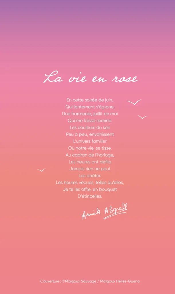 En parallèle, la couverture d’un recueil de poèmes à la mémoire de sa « Mamie Rose » a été réalisée dans un univers doux et feutré, empreint de délicatesse.